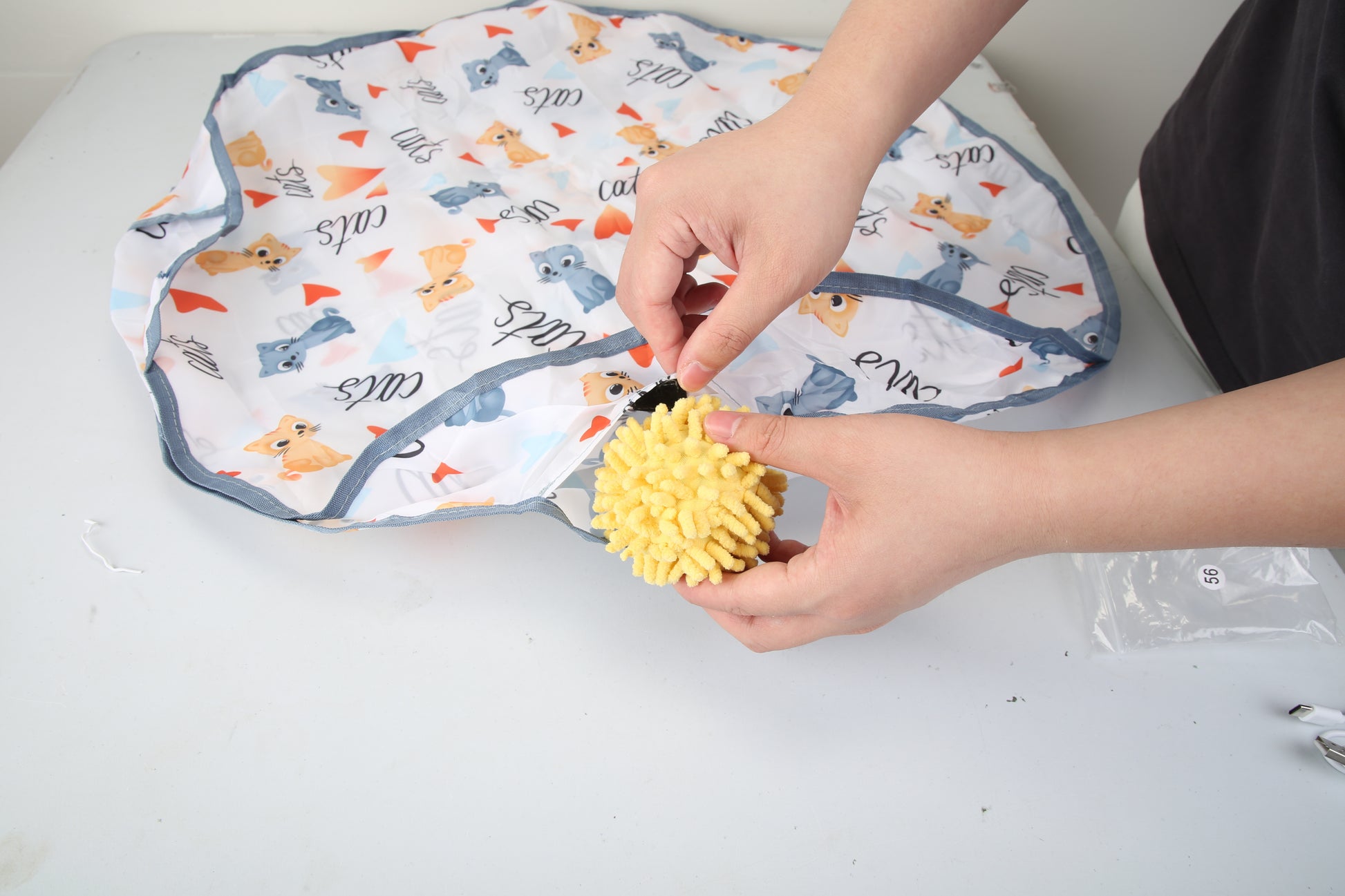 - *Multiple Play Options*: Understanding that cats love playing with items hidden under blankets, our cat chasing toy ball can be placed inside the cloth bag and move irregularly, which will arouse your cat's interest and provide endless entertainment. Suitable for both solo and group play. We also provides a ball cover to reduce the noise of ball rolling and protect the carpet or floor.