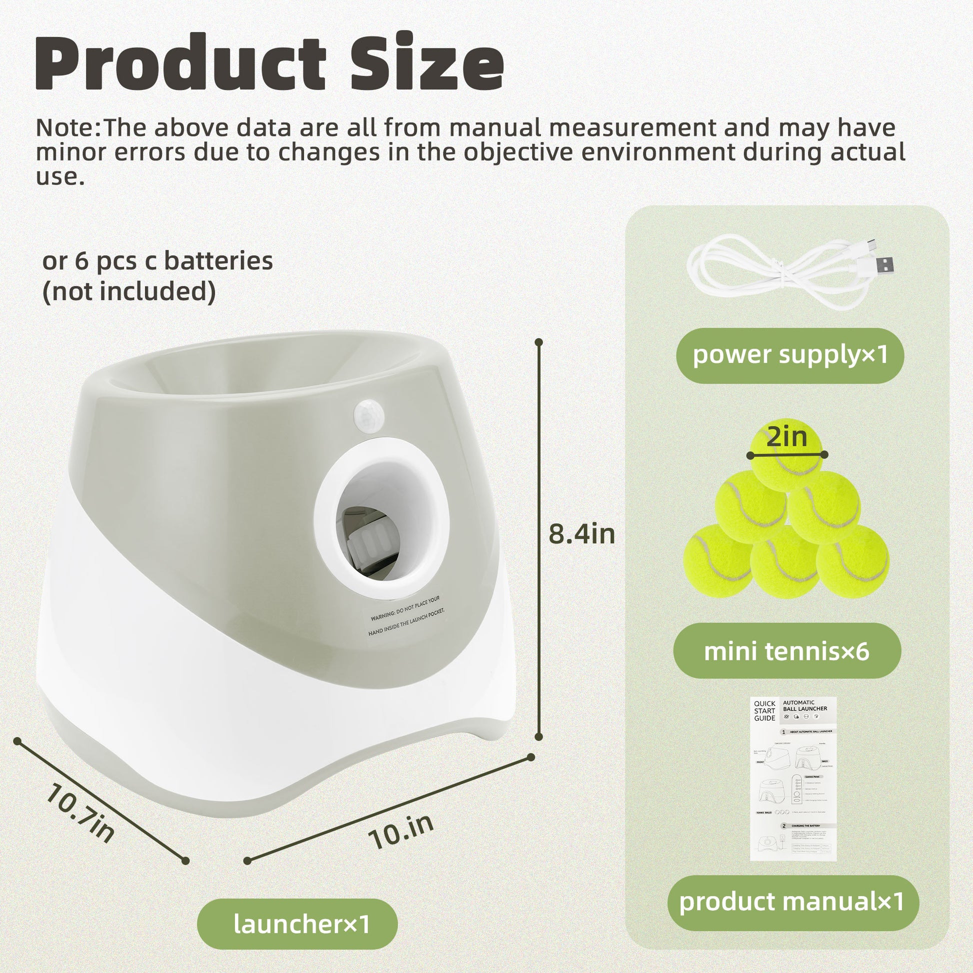 - Specialized Tennis Balls: This dog tennis ball launcher comes with six 2-inch tennis balls designed for small and medium-sized dogs. The tennis balls are chewable, safe and easy to clean. It provides entertainment while keeping your dog safe. Other sizes of tennis balls are not suitable for this product.