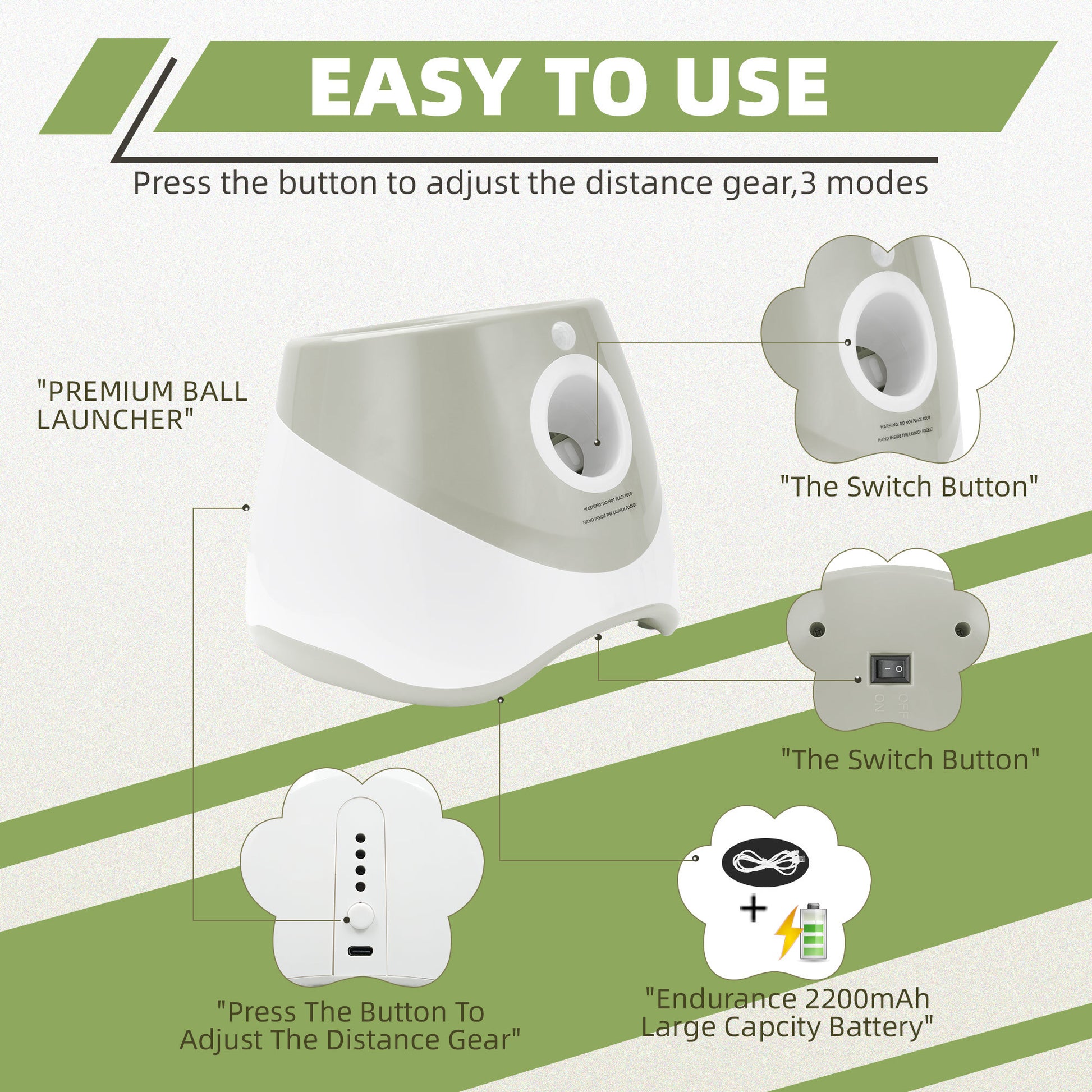 Only Supports Self Pickup Automatic Dog Ball Launcher, Indoor Outdoor Interactive Dog Toy With Three Launch Ranges, Includes 6 Mini Tennis Balls And A Data Cable