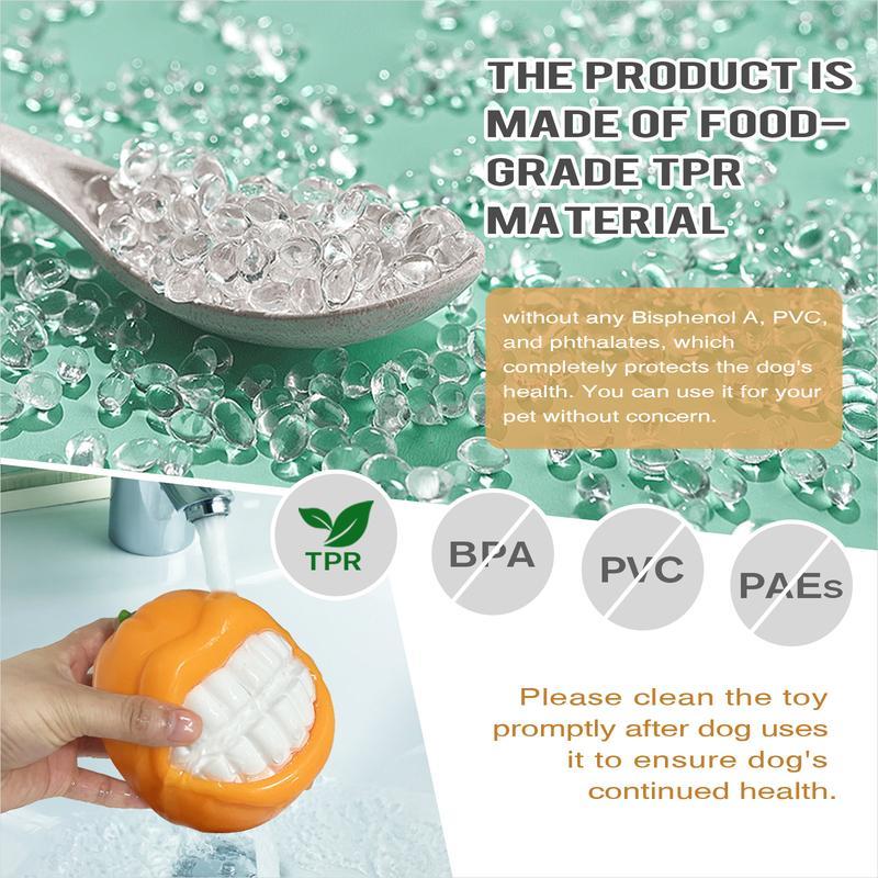 Our Orange Squeaker Dog Toy is a unique product. lt hasa built-in sound whistle to provide extra entertainmentfor your pet. We've also made a major upgrade to ourproduct with a new TPR material that is twice as thick.making it more chewable and durable. This means yourdog can enjoy longer playtime without worrying aboutthe toy breaking. Pumpkin squeaker toys not only fulfilyour pet's entertainment needs, but also extend theirlifespan, ensuring a happier, healthier pet".Product Description